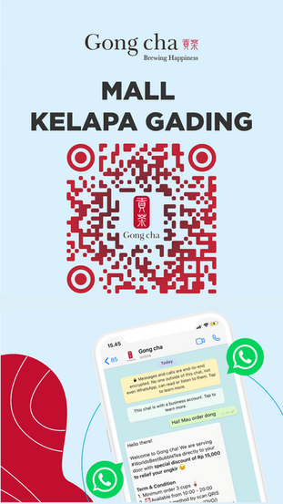 (https://linktr.ee/gongchaindonesia) atau Scan Barcode Gong cha Store dibawah, untuk langsung terhubung dengan Gong cha Whatsapp Store
